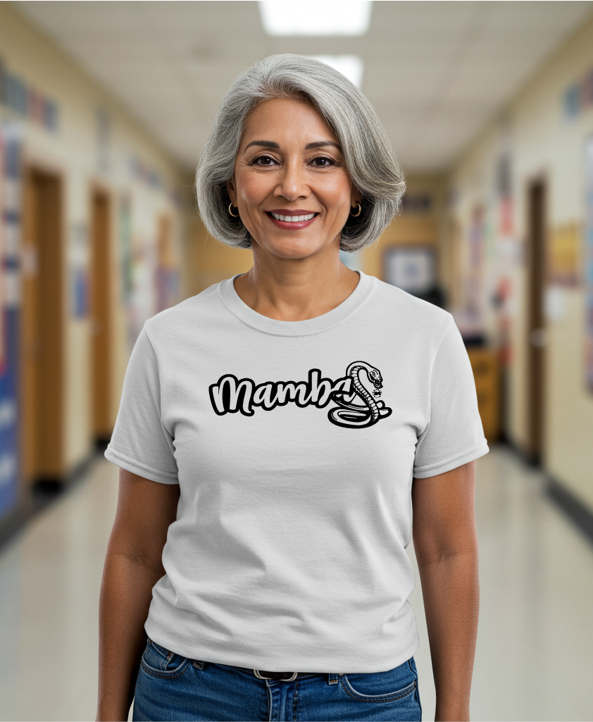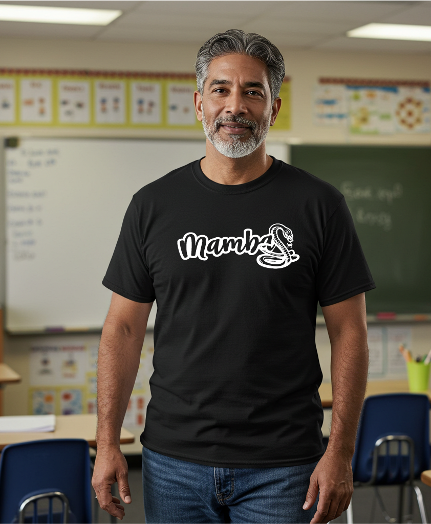 Crafted from a soft, high-performance cotton-blend, this tee delivers comfort and durability for athletes, students, and supporters alike. Its sleek Mamba snake print embodies both style and school pride, making it the perfect choice for game days, workouts, and everyday wear.